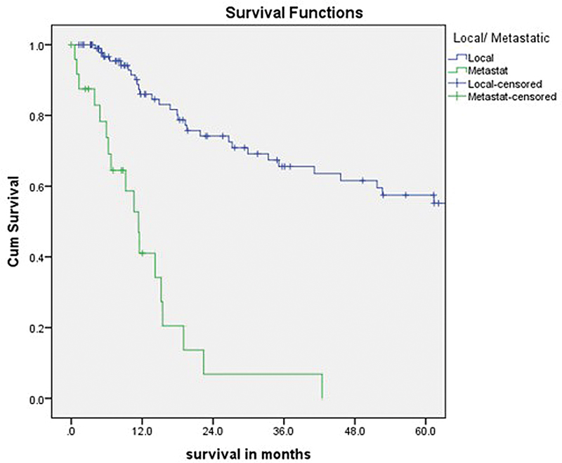Fig 1: 5-Year Survival for patients with Localized Disease (Local) and Metastatic Disease (Metastat)