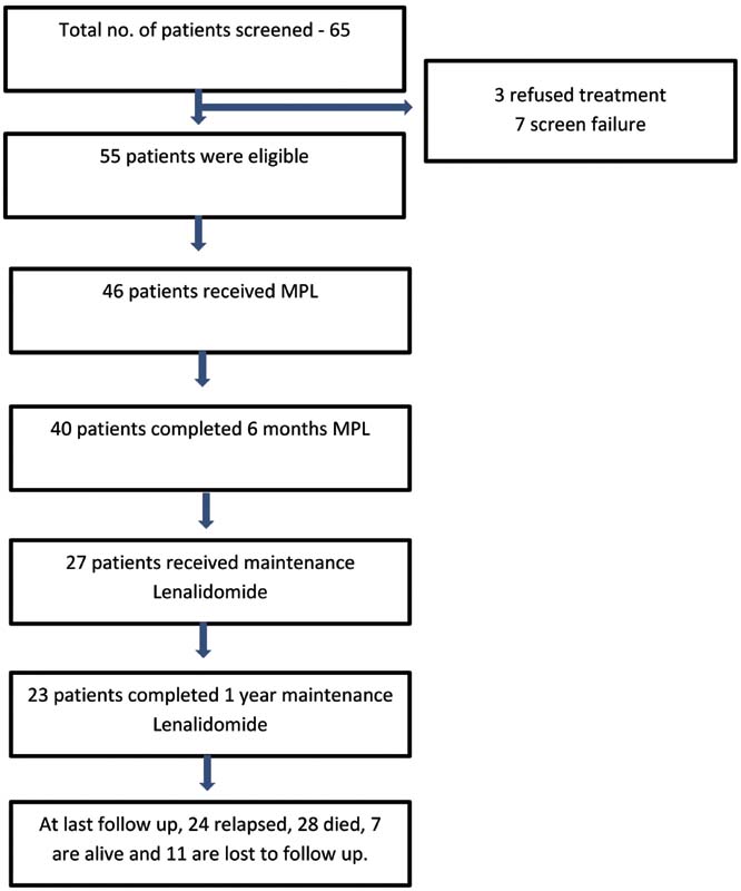 | Figure 4:Consolidated Standards of Reporting Trials (CONSORT) diagram. MPL, melphalan, prednisone, and lenalidomide.