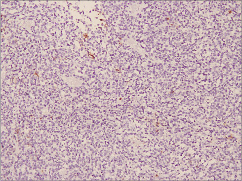 |?Figure. 3? Immunohistochemistry: photomicrograph showing tumor cells to be negative for CD10 (IHC; ?100)