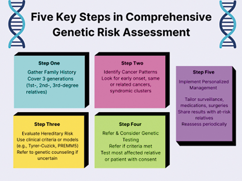 Fig 3 : Five key steps in comprehensive genetic risk assessment.