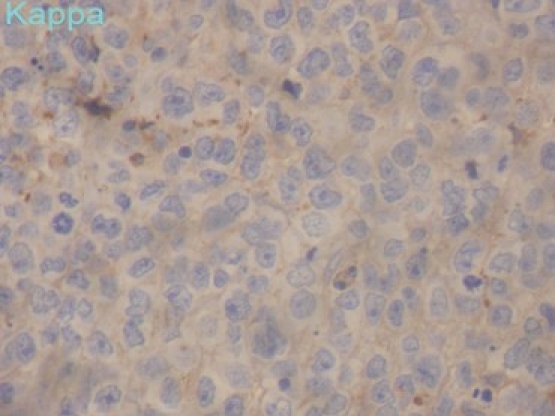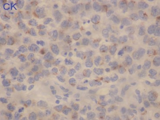 EMP originating from the testis is called primary testicular plasmacytoma. Testicular plasmacytoma presenting with MM invading testis is called secondary testicular plasmacytoma. Primary MM, the neoplasm of monoclonal plasmocytes, is mainly located in the bone marrow, but neoplastic cells may generally and frequently invade other tissues and organs, such as the liver, lung, spleen, pancreas, kidney, lymph nodes, digestive tract, thyroid, heart, testis, ovary, and skin.[3,4] EMP occur most commonly in the nasopharyngeal area; the other frequently involved sites include the liver, spleen, lymph nodes, and kidneys, although involvement of nearly every organ and tissue in the body by myeloma cells has been reported.[3,4] Testicular plasmacytoma is a rare cause of intratesticular neoplasia. Only seven cases among 6000 testicular and peritesticular primary and secondary tumors on file at the Armed Forces Institute of Pathology in 1970 have been reported.[5] Only 52 total cases of testicular plasmacytoma published between 1939 and 2002.[6] Most of these cases had previous or concurrent MM or EMP. Cases of solitary testicular plasmacytoma at onset are few, with about 17 reported cases.[6] Many of these initially solitary lesions progressed to MM. To our knowledge, fewer than 10 cases of primary testicular plasmacytoma did not progress to MM, with variable periods of follow-up.[6] Along term observation for about at least 1 year may be essential to determine the primary or secondary nature of an EMP, although MM can develop years later.[7] Perhaps more importantly, this finding may herald the diagnosis of concurrent or subsequent MM. The incidence of testis plasmacytoma accounted 0.03% of all testicular neoplasms, and 0.6% of all MM types.[6] EMP originates from other extramedullary tissues with a male predilection (3:1=male: female) and accounts for < 4% of malignant plasma cell tumors.[8,9] The criteria for diagnosis of EMP are as follows: (1) biopsy demonstrates a single extramedullary site of the plasmacytoma, with or without involvement of lymphoid tissue, and without changes to the skeleton (which may exclude the possibility of MM); (2) bone marrow aspiration reveals < 5% plasmacytes; and (3) other parameters of the bone marrow are normal.