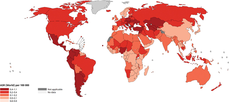 | Fig 1 :Age-standardized rate (world) per 100,000, incidence of testicular cancer as per GLOBOCAN 2022.