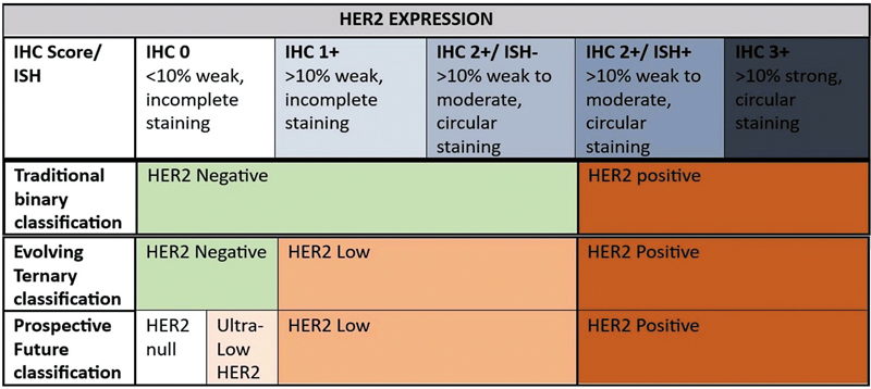 Fig 1: Human epidermal growth factor receptor 2 (HER2) classification and current categories.
