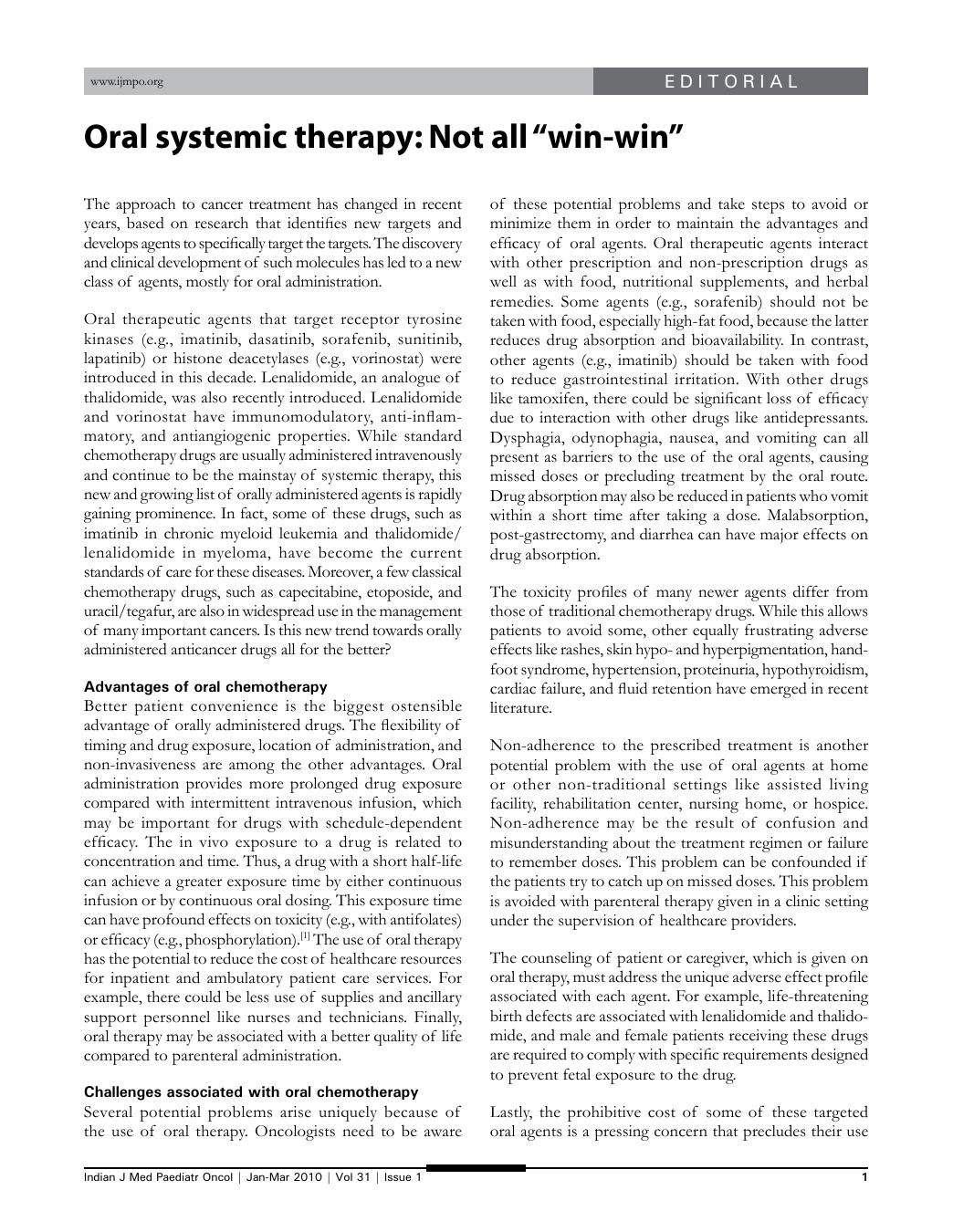 CC BY-NC-ND 4.0 · Indian J Med Paediatr Oncol 2010; 31(01): 1-3