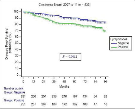 |?Figure. 4?Five years disease-free survival in node-positive is 80.8% versus 90.6% in node negative disease