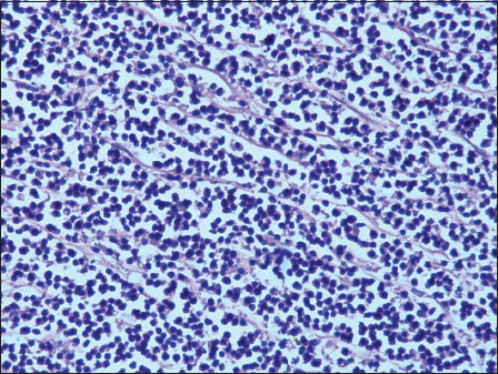 | Figure 1:Sheets of atypical lymphoid cells (H and E, ×400)