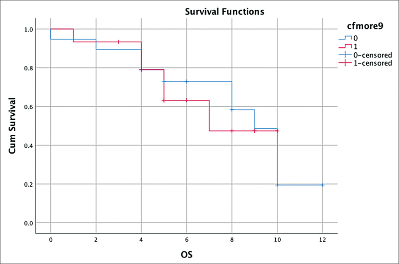 | Fig 5: Survival outcome—overall survival (OS) with baseline median cell-free DNA.|