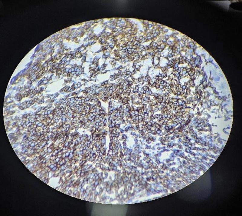 | Figure 3: Immunohistochemistry showing synaptophysin marker positivity.