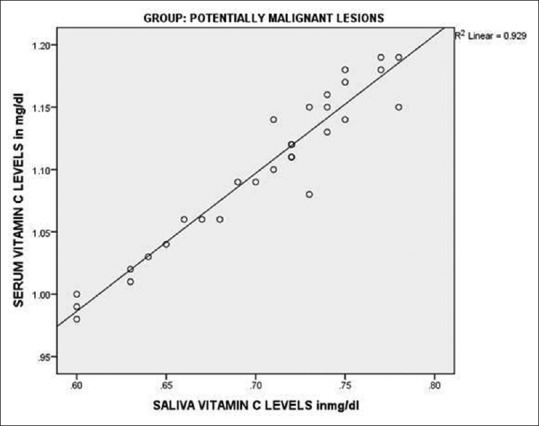 | Figure 4:Correlation of serum and salivary Vitamin C in oral potentially malignant disorders