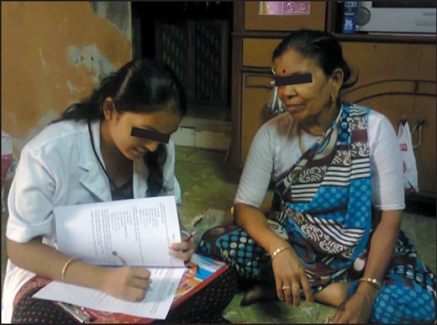 | Fig. 1 Personal interviews being conducted at the house of participant woman to collect the pre-intervention data
